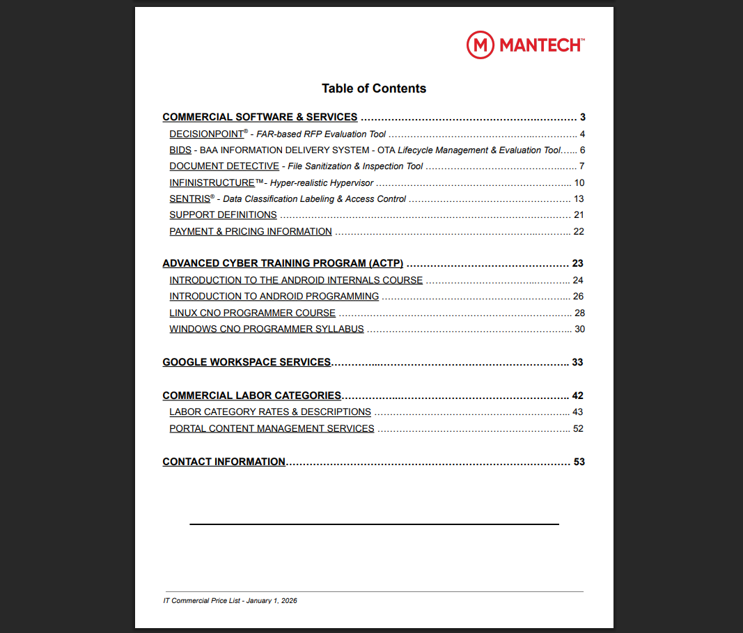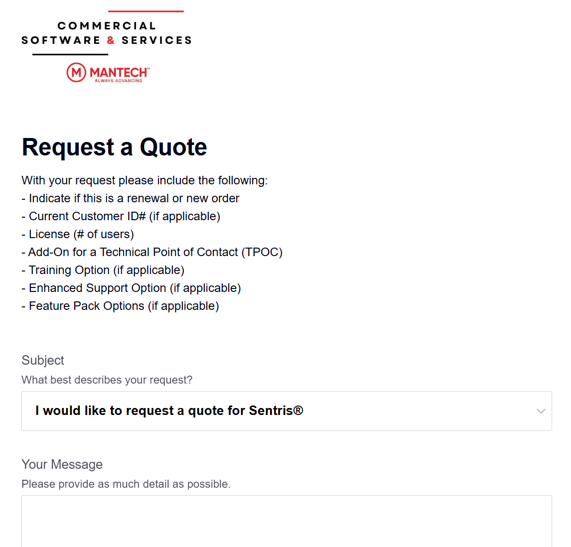 To find out more, request a quote below or email Commercial.Services@MANTECH.com.