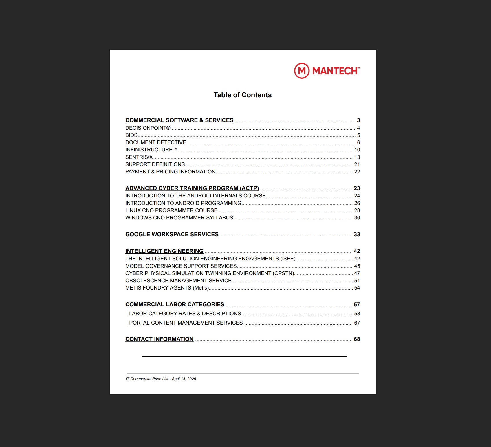 To find out more, request a quote below or email Commercial.Services@MANTECH.com.